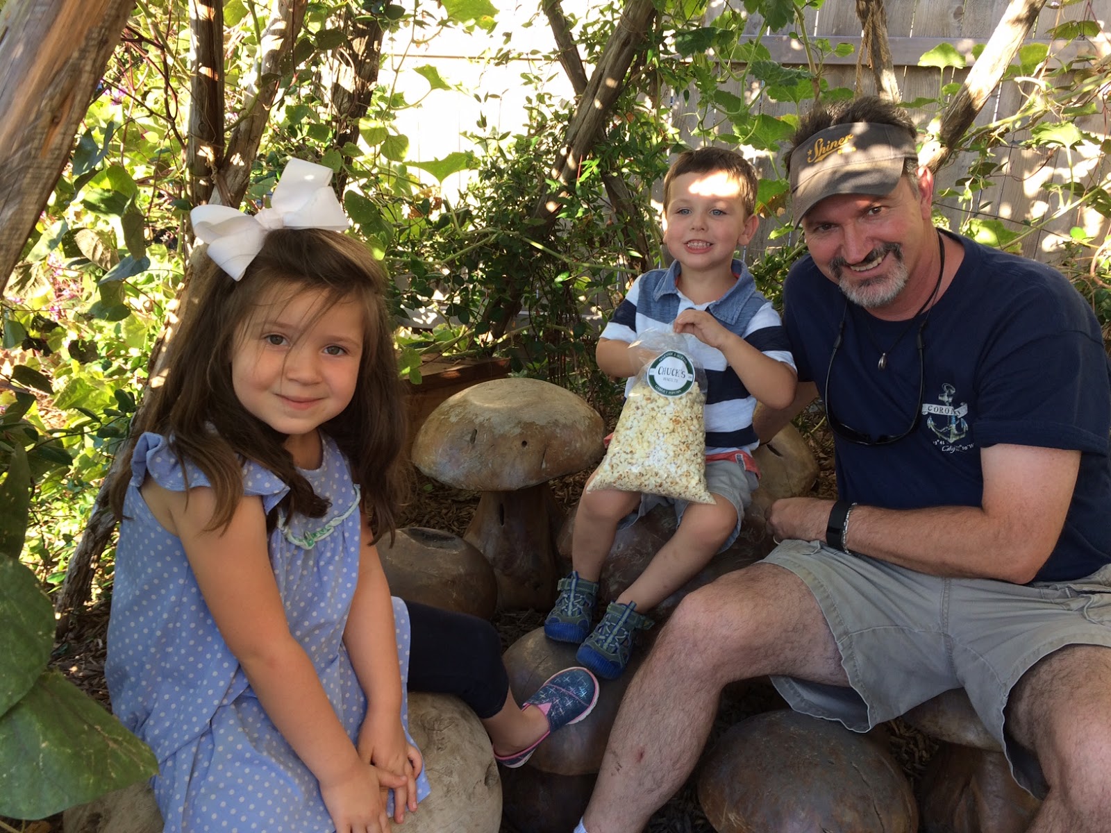 After that, we headed outside and wandered to the the garden area that had a pumpkin patch and the Magnolia Seed+Supply shop. There were pumpkins of all shapes, sizes, and colors. Lots of places for fun photo opportunities. A loved the fairy gardens they had set up throughout the garden area. I loved the fairy gardens throughout the garden area. Both kids thought the garden tee pee they had set up was really cool too. A wanted to us to buy her some of the fairy garden accessories for her play garden at home.
